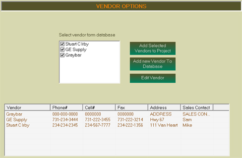 Place a check by any vendor that you will be receiving a bid from on that particular project.
